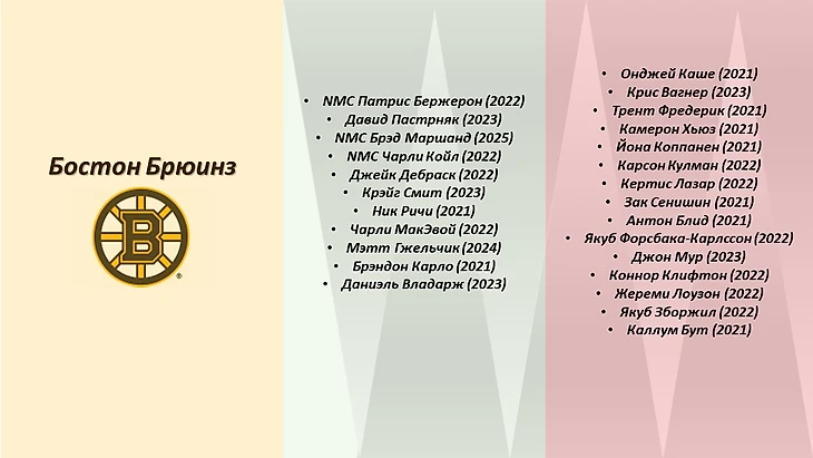 Уверен в том, что Бостон воспользуется схемой защиты 7+3+1. Что в нападении, что в обороне кандидаты для защиты, на мой взгляд, абсолютно очевидны. В атакующей линии альтернативных вариантов просто-напросто нет, это совершенно точно сильнейший набор защищенных. Отвечаю сразу на возможный вопрос об отсутствии Холла, напомню, что игрок летом станет неограниченно свободным агентом, в его защите нет никакого практического смысла, он все равно выйдет на рынок, если ранее не продлит контракт с Бостоном. А потому нет никакой необходимости жертвовать Ричи или Смитом, чтобы защитить Холла, никакого профита из этого Бостон не извлечет, а потому выбор практически лишается альтернативы. Можно было бы говорить о защите чеха Каше, но парень больше лечится, чем играет, Сенишин ожиданий не оправдал, а Лазар, Фредерик и Кулман - игроки боттома, ради которых точно не стоит оставлять Ричи доступным для выбора. В защите история немного интереснее, но, все же, полагаю, Макэвой, Карло и Гжельчик являются более важными фигурами относительно своих коллег. Среди вратарей альтернативы также нет. Отлично проявившего себя Сваймана защищать не нужно, у Раска и Халака истекающие контракты, что просто не оставляет варианта, нужно сохранять в системе чеха Владаржа. Сиэтл же, думаю, сведет свой выбор к защитникам Лоузону, Зборжилу и Клифтону. Прежде всего, по контрактным соображениям, все трое имеют действующие контракты на сезон 2022, нужно вписываться в лимит, а достойных вариантов с действующими соглашениями на расширении будет не то, чтобы очень много. Предпочтение, полагаю, будет отдано олдскульному жесткому канадцу Жереми Лоузону, любой обороне нужны мускулы, а канадец, кроме того, имеет некоторое превосходство в апсайде перед Клифтоном. Зборил же, к сожалению, как и Сенишин, совсем пока не оправдывает ожиданий. Не исключаю варианта, при котором заберут его, но все-таки полагаю, что выбор будет сделан в пользу более надежного и релевантного варианта прямо сейчас. Если же рассматривать варианты с атакой, то для выбора будет доступен уже упомянутый Кертис Лазар. Канадец в свое время подавал огромные надежды, в Оттаве его проецировали в качестве одного из лидеров строящейся команды, но время показало, что этот игрок не способен играть выше третьего звена и в целом весьма ограничен в своих скиллах.