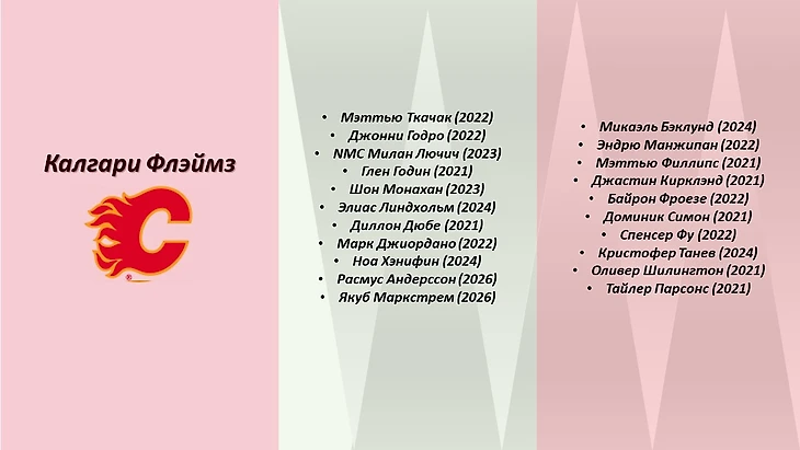 Калгари может сделать доступным для Сиэтла один из самых вкусных лотов всего драфта. В качестве одного из вариантов можно рассматривать Диллона Дюбе. Огоньки обладают сильным ростером и в ближайшие 2 сезона, полагаю, будут стремиться в ПО, а потому не станут жертвовать Микаэлем Бэклундом, которого многие почему-то уверенно отправляют в Сиэтл. С точки зрения борьбы за выход в плей-офф швед прямо сейчас куда предпочтительнее, например, Диллона Дюбе и Калгари в данных обстоятельствах, пока еще в деле Марк Джиордано, пока все лидеры на контрактах минимум до 2022 года, не поставит перспективу выше результата. Этим планам не помешает даже неудачный сезон, поскольку текущий год стоит особняком, его нельзя ни в коем случае рассматривать, как тенденцию. Но есть еще один немаловажный момент. С учетом сохранения всех лидеров нападения, которые находятся на контрактах, как минимум, до 22 года, Калгари имеет риск попасть не в самую приятную ситуацию, не вписавшись в минимальные требования двух доступных форвардов с контрактами на следующий сезон и необходимым минимумом матчей. Возможно, учитывая обстоятельства, место Дюбе займет другой канадец Эндрю Манжипан, что для Сиэтла тоже станет весьма и весьма неплохим вариантом. Возможность сохранить клубе и Манжипана, и Дюбе, и Бэклунда в том, чтобы убедить Милана Лючича снять запрет, попутно убедив Рона Фрэнсиса забрать плохой контракт, приправленный парой выборов на драфте. Но, на мой взгляд, такой сценарий малореален. Лючич вроде бы даже и не против того, чтобы отказаться от запрета на перемещение, но вот нужен ли он будет Фрэнсису? Большой вопрос В защите ситуация куда проще, есть лидеры Джиордано, Хэнифин и Андерссон, которые точно будут защищены. Не смотря на все слухи о том, что Джио могут оставить вне списка. Есть также полезный, но травматичный Крис Танев с не самым приятным контрактом до 2024 года. Полагаю, именно через Танева или Лючича Калгари будет пытаться достичь компромисса с Сиэтлом, пытаясь сохранить всех лидеров атаки. Придется пожертвовать пиком и/или минором, но оно, полагаю, того стоит и Рону Фрэнсису такой вариант, думаю, может быть интересен. Если же договориться с генеральным менеджером Сиэтла не получится, в новую франшизу, предполагаю, отправится Эндрю Манжипан.