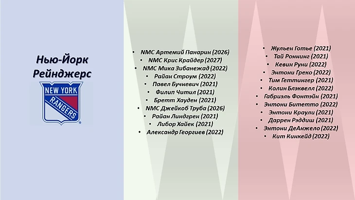 Его никто с драфта отказов бесплатно не забрал. С рейнджеров можно слупить ценный актив, а если сильно нужен ДиАнжело, то после выкупа его можно подписать на тот же год дешевле.
