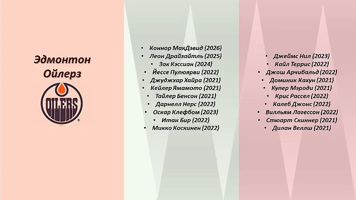 Допускаю, что Эдмонтон применит схему защиты с восемью полевыми и освободит от драфта расширения Калеба Джонса, но такой вариант маловероятен, на мой взгляд, поскольку в этом случае придется пожертвовать Пулюярви. Если с обороной в системе Эдмонтона все более или менее в порядке, есть Нерс, Клефбом, Бир, молодые Бушар, Броберг и Саморуков, то с краями наблюдаются определенные сложности. Убежден, что этот контракт с Эдмонтоном финн отработает до конца, ему будет дан полноценный шанс. Сиэтл же, полагаю, при таком варианте защиты может обратить внимание на оборону, а именно на уже упомянутого Калеба Джонса. Джеймс Нил полностью выхолощен, ожидать чего-то хоть сколь-нибудь взрывного от него уже не приходится, то же самое в той или иной степени относится к Кайлу Террису. Есть вариант с Джошем Арчибальдом, но я не очень понимаю, с чего бы вдруг Эдмонтону тратить этот выбор на посредственного ролевика в 3-4 звено. Доминик Кахун совсем не оправдал ожиданий. Когда играешь в одной команде с Конором и Драйзайтлем и, более того, выходишь непосредственно с ними в одних сочетаниях, определенно нужно демонстрировать куда более привлекательные цифры. Также не сбрасывал бы со счетов вариант с вратарем Скиннером.