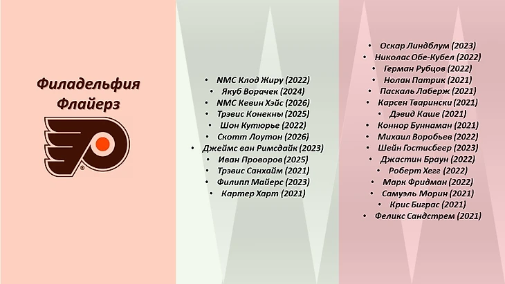 Филадельфия, пожалуй, представит самый очевидный список, на данный момент очень сложно представить какие-то другие фамилии в зеленой зоне. Нолану Патрику было предоставлено предостаточно шансов, пора признать, что этот пик 2017 стал большой ошибкой и Филадельфия, уверен, не станет жертвовать никем из лидеров, чтобы сохранить Патрика. Им совершенно точно и в текущей ситуации, и в перспективе не нужен Шейн Гостисбеер, а вот Сиэтлу блюлайнер вполне может пригодиться и на пару сезонов стать их главной силой в Power Play. Приемлемый контракт, как по сумме, так и по сроку, отличные навыки игры в большинстве, хороший бросок, подходящий набор для новой команды. Вместе с выбранным ранее ДеАнжело Шейн способен качественно закрыть линию в большинстве. Это точно будет максимально веселое в защите, но столь же продуктивное в атаке зрелище. Даже предположить не могу, что может заставить Сиэтл пройти мимо Гостисбеера, принимая во внимание тот факт, что в Филадельфии не имеют ничего против того, чтобы от этого контракта избавиться. Конечно, можно поверить в то, что Патрик внезапно решит свои хронические проблемы со здоровьем, но это вариант чересчур наивный и малореальный. Есть еще Линдблум, но у него совершенно особенная история. Для тех, кто не в курсе, человек излечился от тяжелейшего заболевания, саркомы Юинга, эту форму рака считают одной из самых агрессивных. Филадельфия продлила с ним контракт скорее из соображений поддержки, что тоже правильно, но есть большие сомнения в том, что он сможет вернуться на прежний уровень. Уже сам тот факт, что этот парень выжил и, более того, вернулся на лед, говорит о колоссальном мужестве, но Сиэтл, полагаю, шведа брать точно не станет, вмешиваться в эту историю было бы некрасиво и бессмысленно, на мой взгляд.