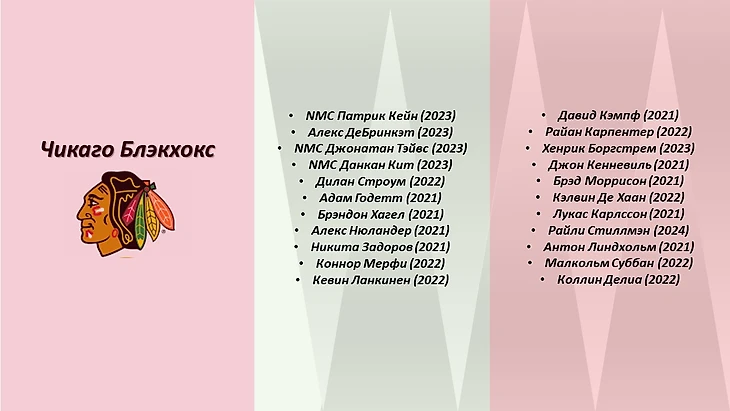 Чикаго связано по рукам и ногам запретными контрактами Кейна, Тэйвса, Кита и Сибрука, съедающими почти половину кепки. Четыре игрока, которых непременно нужно будет защитить. Подозреваю, что Блэкхос будут пытаться договориться с Кейном, который прямо сейчас является единственным валидным активом из этой четверки, о снятии запрета. Но не для того, разумеется, чтобы выставить его на драфт расширения, а с целью выгодного для себя обмена на пики/миноров. И будет это, если будет, уже после драфта расширения. Спорная теория, но, как минимум, имеющая право на жизнь. Иногда для того, чтобы выжить, и остаться конкурентным, нужно чем-то или кем-то пожертвовать. Собственно, даже с учетом наличия четырех этих трудностей, на возможность защитить всех, кого нужно и кто достоин остаться в будущей возродившейся команде, всё это никак не влияет. И Кубалик, ДеБринкэт, и с Строум, и даже несколько максимально сомнительных персонажей легко в протект-лист умещаются. Кроме того, контракт Брента Сибрука, который не так давно объявил о завершении карьеры ввиду проблем со здоровьем, вероятно, будет освобожден от необходимости защиты, что поможет Чикаго сохранить и Коннора Мерфи, и Никиту Задорова. Выбор для Сиэтла небогатый, прямо скажем. Предполагаю, сделан он будет в пользу защитника Райли Стиллмэна, молодого домоседа на приемлемом контракте до 2024 года. Е сть также Кэлвин Де Хаан, подверженный травмам игрок, но чрезвычайно полезный в здоровом и готовом состоянии. Для молодой франшизы он стал бы колоссальным подспорьем, но, думается, рисковать с ним не станут, принимая во внимания его больничную карту. Конечно, возможен еще вариант с Малкольмом Суббаном, но, как и в случае с Адином Хиллом, не вижу ни одной объективной причины выбирать откровенно слабого вратаря.