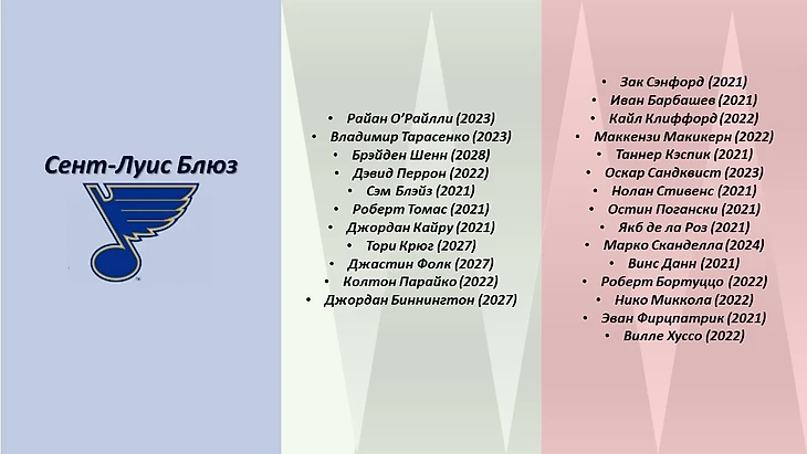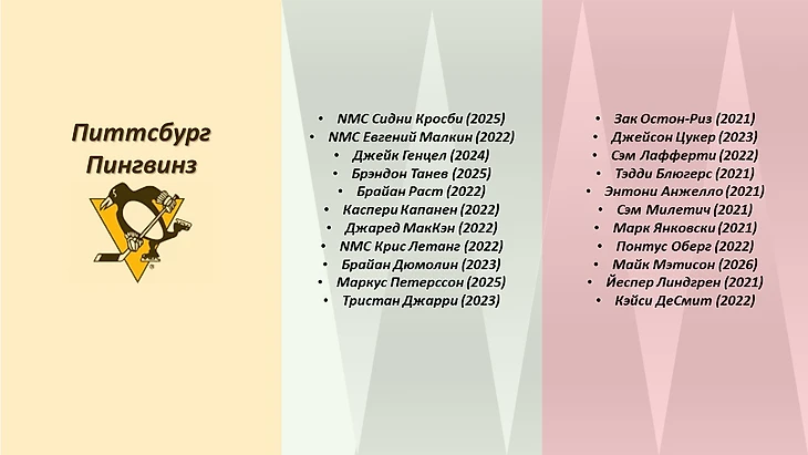 Список Питсбург тоже в определенной степени предсказуем. Вопросы, пожалуй, могут возникнуть только вокруг выбора между Растом, Маккэном и Цукером. Честно сказать, будь я на месте генерального менеджера Сиэтла, хватал бы Тэдди Блюгерса и бежал, пока пингвины не очухались. Прекрасный игрок боттома, идеальный центр для 3-4 звена. Неплох на точке и, полагаю, еще добьется прогресса в этом компоненте, хорош в спецбригадах меньшинства. Для новой франшизы способен стать настоящей находкой, сразу стараться подписать на 3-4 сезона и не знать на протяжении этого времени проблем с нижними звеньями, потому как Блюгерс и выбранный ранее Комфер склеют их очень плотно. Да, это игрок, у которого есть совершенно очевидный потолок, ждать какого-то колоссального прогресса от него не приходится, но обжигать горшки тоже кому-то надо, и латыш под эту задачу подходит прекрасно. Но, полагаю, Фрэнсис здесь пойдет по пути наименьшего сопротивления и выберет Джейсона Цукера, именно он из обозначенной выше тройки, думаю, останется незащищенным. И это не самый плохой вариант, снайпер хорошего уровня команде необходим. Да, этот сезон во многом понизил его котировки, но, уверен, не стоит делать глубоких выводов, поскольку вмешались травмы и ковид, у Цукера, по большому счету, не было полноценной возможности освоиться в новой команде. А Потому Питтсбург пожертвует тем, кого не получилось интегрировать в командную систему, а Сиэтл воспользуется возможностью получить крепкого снайпера на сносном контракте.