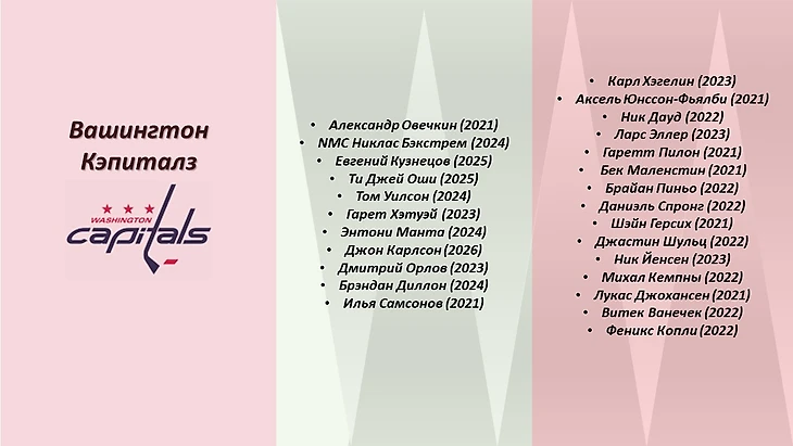 Да, я помню, что зарекался защищать неограниченно свободных агентов, но Овечкин все-таки особенная история, не защити его Вашингтон, это просто-напросто могут расценить как акт неуважения, подняв совершенно не нужную шумиху. Ну и я не исключаю того, то Ови подпишется с Кэпиталз до драфта расширения. Есть вопросы по Евгению Кузнецову, но его неспортивное поведение точно не спровоцирует Вашингтон отказаться от него на расширении и просто подарить Сиэтлу. Так или иначе, это актив, за который на рынке можно получить достойную компенсацию, поэтому вариант с незащищенным Кузнецовым, уверен, исключен. В остальном, если мы говорим о поле, никаких вопросов возникать не должно. Хэтуэй важнейший и очень полезный игрок, а Диллон и Орлов гораздо более весомые игроки в сравнении с Шульцем, которого, полагаю, изначально и подписывали во многом под расширение. С вратарской же линией ситуация гораздо более интересная и неоднозначная. Если перед началом сезона 100% респондентов на вопрос о том, кого защитит Вашингтон, Ванечека или Самсонова, выбрали бы россиянина, то сейчас ответ далеко не столь однозначен и вообще далеко не факт, что Самсонов сейчас является фаворитом менеджмента Вашингтона. Илье определенно стоит начать больше внимания уделять игре и развитию, как профессиональному, так и личностному. Ванечек же в этом сезоне воспользовался предоставленным шансом и заметно свои котировки на рынке повысил. Но, все же, полагаю, ожидания прогресса от Самсонова перевесят, Вашингтон не захочет терять одного из сильнейших потенциально вратарей лиги, Витек Ванечек отправится в Сиэтл навязывать конкуренцию опытным худобину и Аллену. В крайнем случае чех сможет стать для Сиэтла очень неплохим активом для обменов.