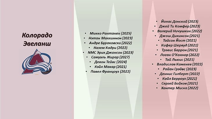 Колорадо совершенно точно будут защищать четырех защитников. Едва ли им удастся уговорить Джонсона снять запрет на перемещение. Да, было бы неплохо избавить себя от контракта заслуженного, но часто травмирующегося ветерана, но насколько это может быть интересно самому Джонсону? Разменять перспективу выигрыша Кубка Стенли на плавающее неопределенное состоянии нового клуба? Сомнительный шаг. В линии атаке есть четыре очевидных, на мой взгляд, кандидата, Рантанен, Маккиннон, Бураковски и Кадри. Сиэтл в итоге располагает довольно богатым выбором и в защите, и в нападении. Тут и Йост, и Донской, и Комфер, и Ничушкин, и Грэйвс, есть, куда устремить взор. Предполагаю, что Рон Фрэнсис не клюнет на Райан Грэйвса, выдавшего аномальный прошлый сезон и неплохой этот в паре с Макаром, он абсолютно средний, ничем особенным не выделяющийся защитник, способный играть, на мой взгляд, исключительно в комфортных, подготовленных условиях, выступая лишь маленьким звеном паззла. Сейчас он на своем месте. Сможет ли он быть столь же продуктивным в другой команде? Не уверен. Также считаю, что в Сиэтле не станут рисковать с Тайсоном Йостом, некогда перспективным юниором, который так до сих пор и не смог реализовать потенциал. Есть сомнения в том, что когда-либо сможет. Есть уверенность в том, что выбор Фрэнсиса падет на надежного Джей Ти Комфера, идеального юнита для третьего звена с отличными навыками игры в спецбригаде меньшинства.