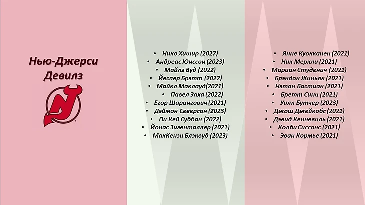 Девилз имеет не так много вариантов для защиты, это опять же тот случай, когда возникает желание не забрать, а поделиться. Есть практически незыблемые Хишир, Вуд, Брэтт, Шарангович и Заха, наконец давший всем понять, зачем его выбирали настолько высоко в 2015 году. Также уверен, что еще дадут шанс шведу Юнссону, этот парень может способен на большее. Выбор Сиэтла, полагаю, развернется вокруг Меркли, Бастиана, Куокканена и Маклауда, а сделан будет в пользу последнего, поскольку канадец хорошо проявил себя этом сезоне, Ник Меркли же в итоге поедет в Сиэтл. Допускаю, что Девилз предпримут попытку сбросить контракт Суббана, но, учитывая, что действовать на момент драфта расширения ему останется всего год, доплачивать приличную компенсацию пиками НДД не захочет совершенно точно, острой необходимости в этом нет, тем более Пи Кей вроде бы решил все же еще поиграть в хоккей, когда в начале сезона казалось, что как игрок он уже закончился. Нужен ли будет Фрэнсису Пи Кей, тоже вопрос. В теории такой шаг может стать хорошим маркетинговым ходом, а с точки зрения платежки Сиэтл ничем особенным себя не обременит. Они вполне могу забрать этот годовой контракт. Также не исключал бы вариант со сбросом контракта Бутчера. Но я, все-таки остановлюсь на Нике Меркли, такие крепкие парни нужны любой команде, а парень, к тому же, обладает определенным апсайдом и вполне может вырасти в нечто больше, чем просто хороший силовой форвард. И, да, тут я немного нарушил свое же правило и фактически не следовал правилам расширения, но эту проблему, полагаю, ГМ Девилз закроет до процедуры, продлив контракты с парой незащищенных РФА в нападении.