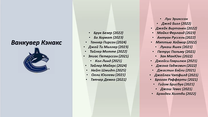 Есть огромная вероятность того, что Фрэнсис будет руководствоваться совсем иными принципами на расширении и вообще со старта пойдет в слив, рассчитывая на богатое межсезонье 2022 года, но я все-таки попытался собрать сквод, который сразу будет способен навязывать борьбу и цепляться за ПО. На примере Вегаса все увидели, что совершенно не обязательно подниматься с самых низов, можно сходу быть конкурентными, собрав приличный сплав из молодых и не до конца раскрывшихся игроков и ветеранов, это обстоятельство, убежден, будет давлеть при выборе, лиге не выгодно , чтобы новая франшиза была пассажиром на протяжении нескольких сезонов.