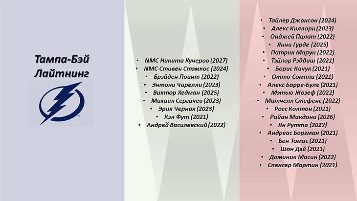 Предполагаю, что Тампа-Бэй решит пойти по схеме защиты 8+1, только так удастся сохранить способного юниора Кэла Фута. Стэмкос и Кучеров имеют пункты о запрете. Впрочем, и без них каждый из них, конечно же, попал бы в список защищенных. Как и Поинт с Чирелли, время решения их контрактных вопросов еще не пришло, в следующем сезоне команде непременно нужны оба. У Сиэтла остается огромный простор для выбора, здесь и искушенные Джонсон с Киллорном, Палатом, Гурде и Маруном, и неплохой молодняк в лице Барре-Буле, Жозефа, Колтона и Стефенса. Но свой выбор Сиэтл, полагаю, остановит на опытнейшем Райане Макдоне. Безусловно элитный игрок обороны станет ключевым звеном защиты Сиэтла на несколько сезонов. Полагаю, велосипед тут изобретать не стоит и любое другое решение Фрэнсиса, если Макдона действительно будет доступен для выбора, я со своей стороны сочту ошибочным. В моем понимании выбор абсолютно безальтернативный и очевидный. Найти игрока калибра Палата или Киллорна - задача довольно простая, стандартная. Макдона же - штучный экземпляр, таких немного во всей лиге. Отсюда возникает резонный вопрос, ответ на который предельно просто. Тампа не будет защищать Райана, потому что для них его контракт, к сожалению, является очень серьезным якорем. Через год предстоит очень жестокая схватка за Поинта, его сохранить будет практически невозможно, но сброс контракта Макдоны оставить хоть какой-то простор и немного повысит шансы Тампы на сохранение Брэйдена.