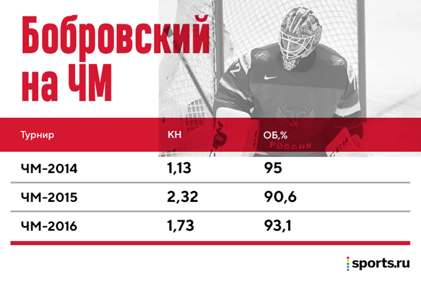 Бобровский приехал спасать сборную. Да, у него посредственный сезон в НХЛ, но на ЧМ всегда выглядел отлично