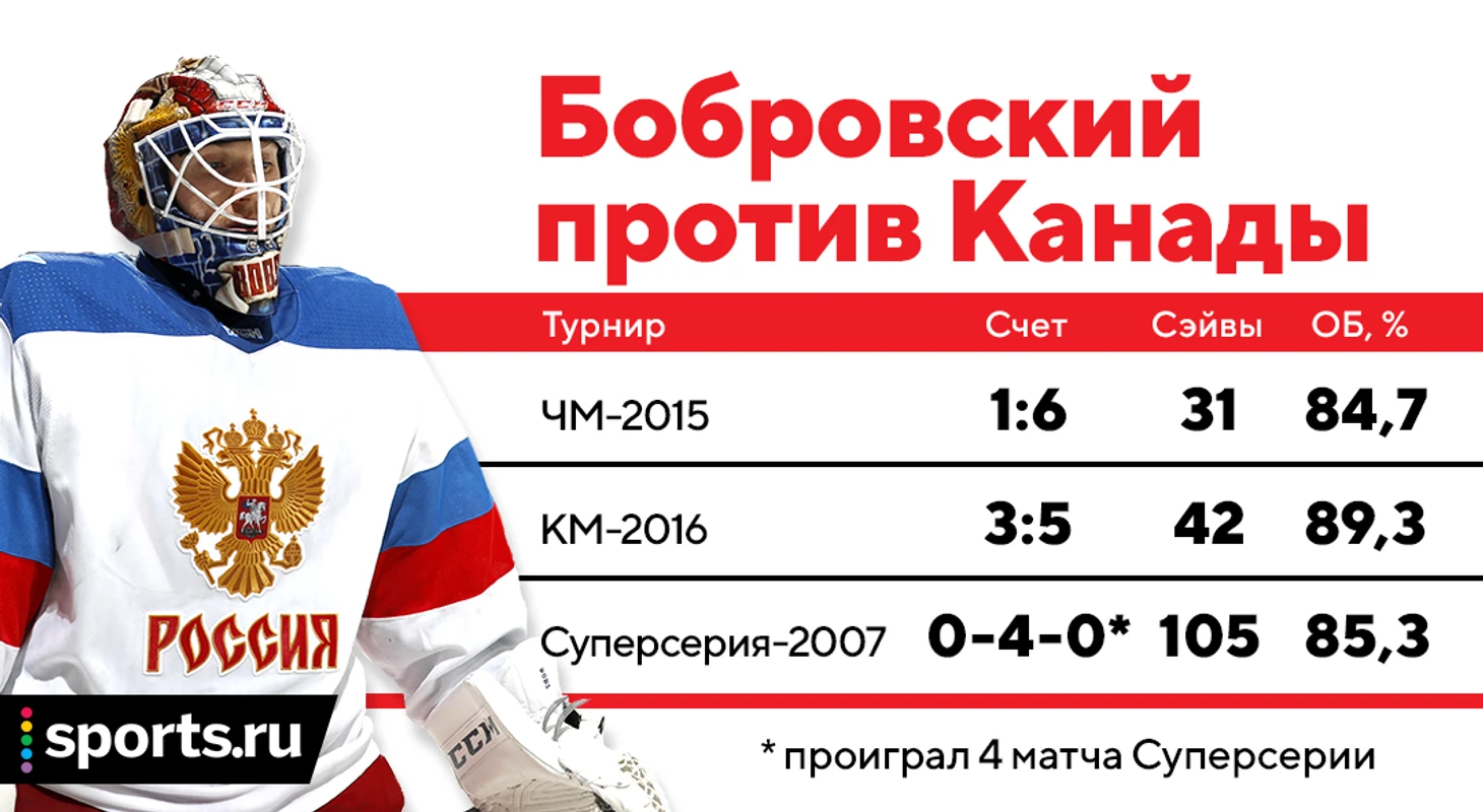 Вот только против Канады у Боба нет ни одной победы за карьеру. Геройства и сэйвы есть, а побед – ни одной.