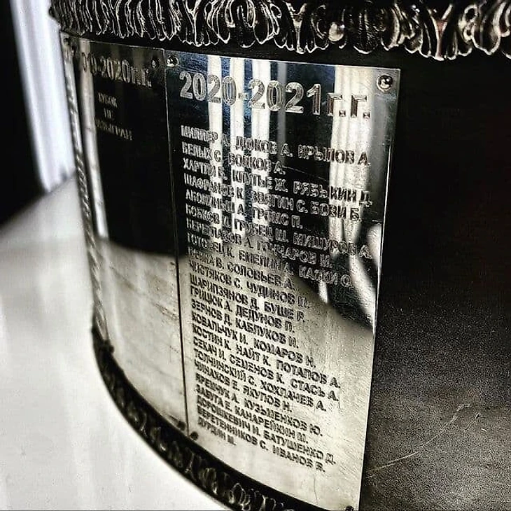 Защитник «Авангарда» Максим Гончаров выложил фотографию Кубка Гагарина, на который уже нанесли гравировку с фамилиями героев сезона.