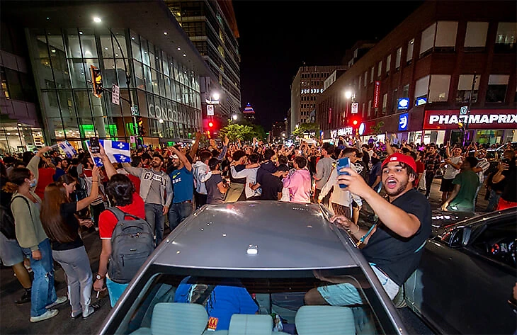 Со временем празднование в Монреале приобрело легкий налет хулиганства: фанаты перевернули полицейскую машину, закидали ее, лазили по столбам – в общем, полное безуми, закончившееся слезоточивым газом в центре города, чтобы разогнать толпу.