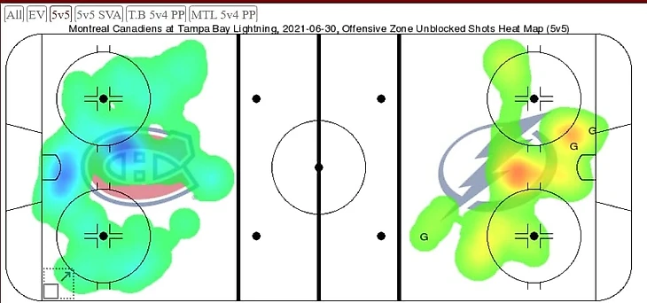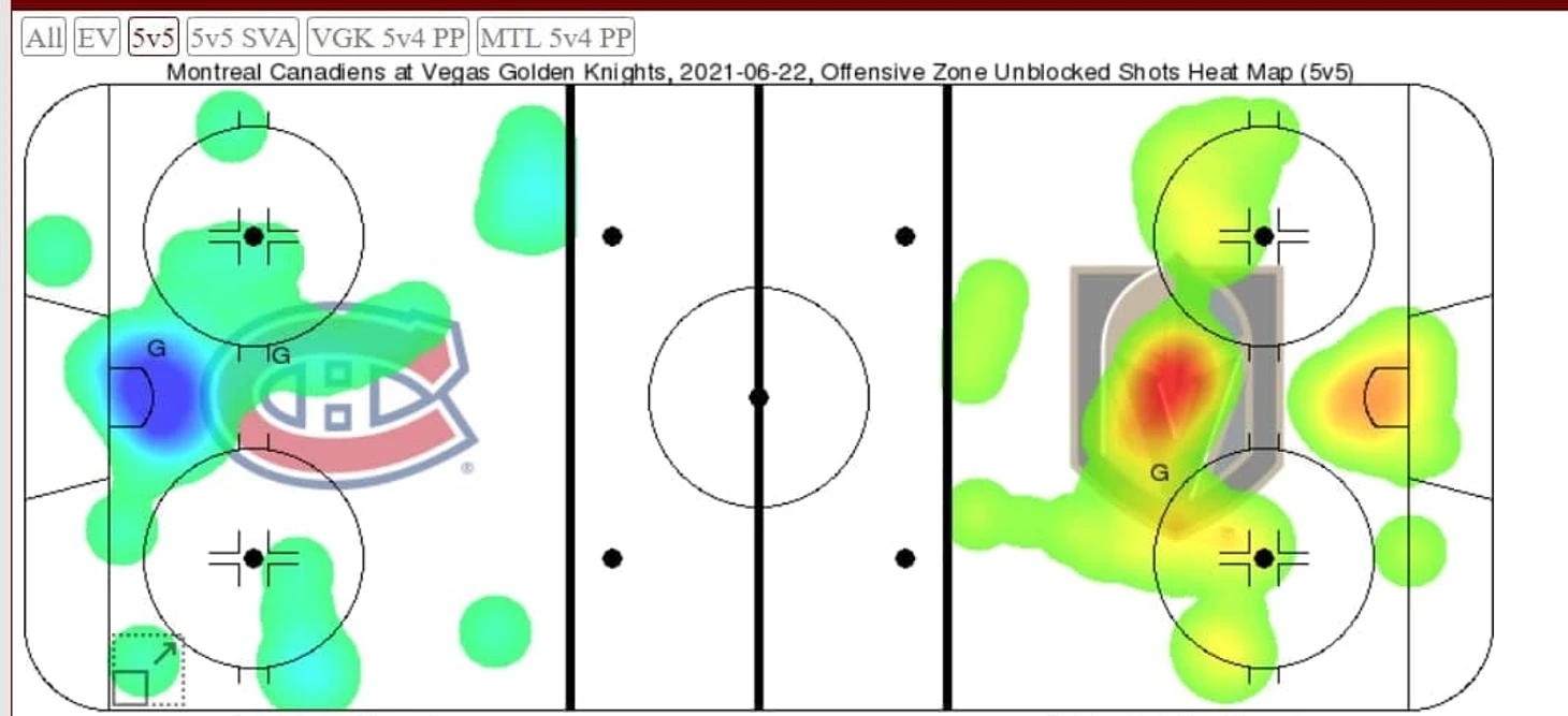 Последнее – катастрофа для простого, но довольно эффективного нападения канадцев. Вот, например, обычная карта бросков из серии против «Вегаса».