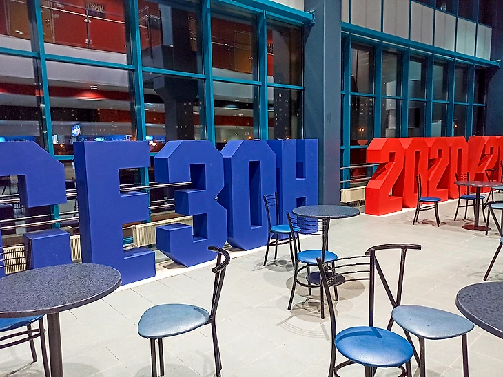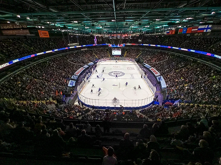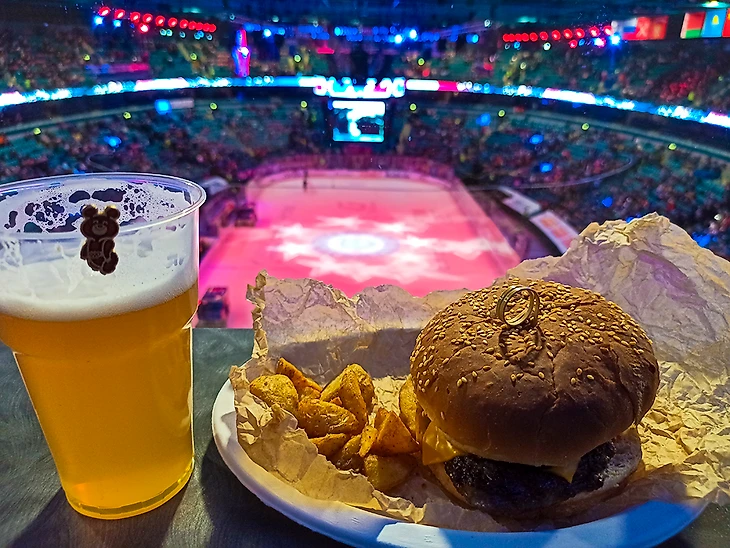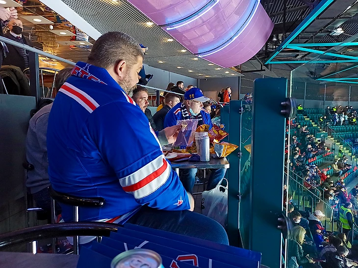 В Ледовый дворец СКА в Санкт-Петербурге я ходил до этого пару раз и все время мое внимание привлекала вывеска ОЛИМП над одной из заворотных трибун. Позже узнал, что это ресторан, в котором можно забронировать столик и наслаждаться хоккеем за приемом пищи. Желая разнообразить свой граундхоппинг, я решил сходить туда разок. Было это уже давненько, четыре месяца прошло, но написать руки дошли только сейчас.