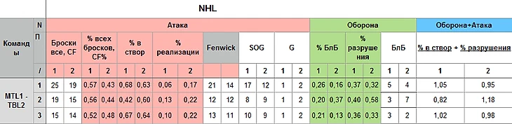 Тампа-Бэй - Монреаль 6:3. Продвинутая статистика