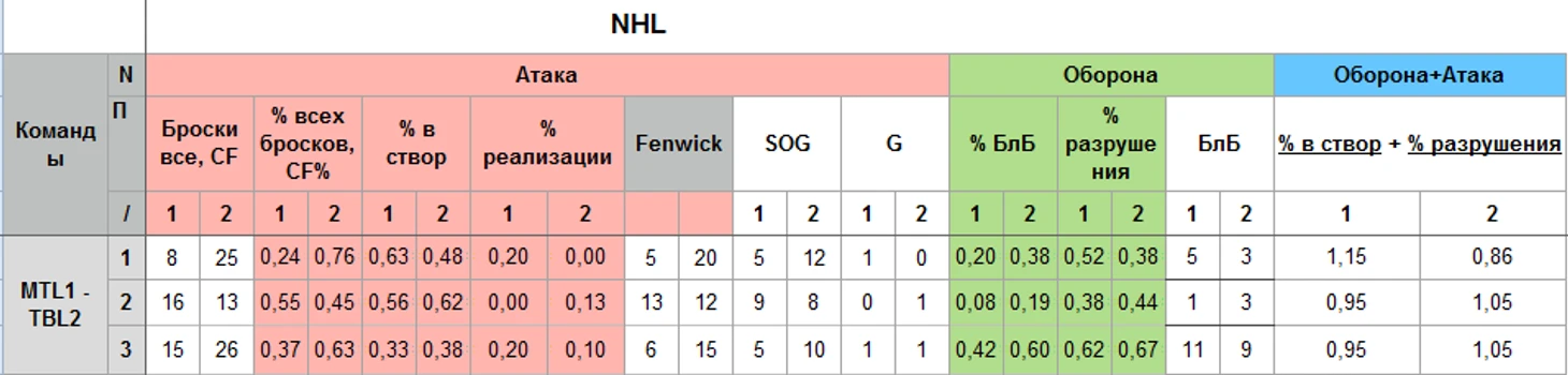 По качеству обороны (% разрушения) Монреаль провалил второй период. А Тампа росла по этому показателю, еще и наращивая бросковую активность.