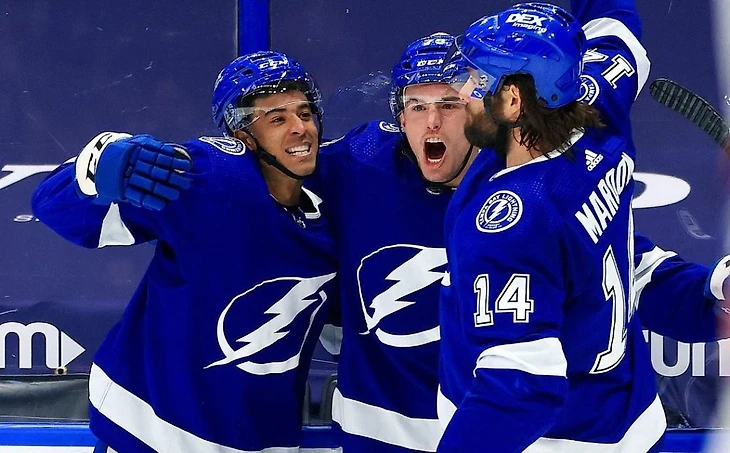 Обмениваем Палата и Джонсона. Предположим, что Брисбуа, понимая, что Джонсон на свой прошлый уровень все-таки не выйдет, а чех окажется жадным до денег решает убрать обоих (на описанных выше условиях их контрактов). Таким образом деньги, освободившиеся от Палата (5,3 млн) можно будет пустить на продление Коулмана и Колтона. Про Колтона я писал выше, ему дают 1,3 млн на 2 года. Коулман (по моему мнению) абсолютно резонно может рассчитывать на рынке на 4-4,5 млн, думаю вполне разумно будет предложить ему 3-4 летний контракт на 4 млн долларов. Блейк мало в чем уступает Палату в плане оборонительной игры, и как мне кажется гораздо более вариативен в атаке. То есть если удастся его подписать за такие деньги, он будет как минимум не хуже чеха дополнять связку Пойнт – Кучеров. В таком случае у клуба останется 6,5 млн под потолком, но на 6 игроков, а не на 7 (3 форварда, 2 защитника, 1 вратарь). При условии, что 5 человек подпишутся за 800-900 тысяч, то у Лайтнинг останется еще около 2-2,5 млн на игрока которым можно усилить Боттом-6. Например, на рынок выходит тот же Армия (возможно он согласится поиграть 1-2 года за эту сумму) или скажем обменять Палата в Коламбус на Рословика + пик. Ну или если совсем уж предаться фантазиям, то на эти деньги Тампа могла бы подписать Гусева в первое звено, а Коулман остался бы в 3-м. Разумеется это при условии, что Никита взялся за ум, ударно провел лето, и как родной вписался к связке Пойнт – Кучеров (благо с последним они старые друзья). Тут можно много гадать. Но важно понимать, что при выполнении 3-его варианта, Тампа-Бэй будет иметь гораздо больше шансов побороться за 3-й кубок подряд. А состав бы мог выглядеть вот так: