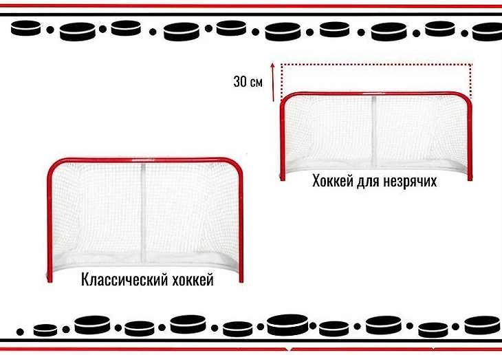 Вратарь в хоккее для незрячих должен вовсе ничего не видеть. Чтобы это гарантировать, на глаза хоккеиста надевают повязку. Представьте: он может ориентироваться только на слух и свои осязательные способности. Чтобы облегчить вратарям задачу, ворота в этом виде хоккея сделаны ниже обычных на 30 см.
