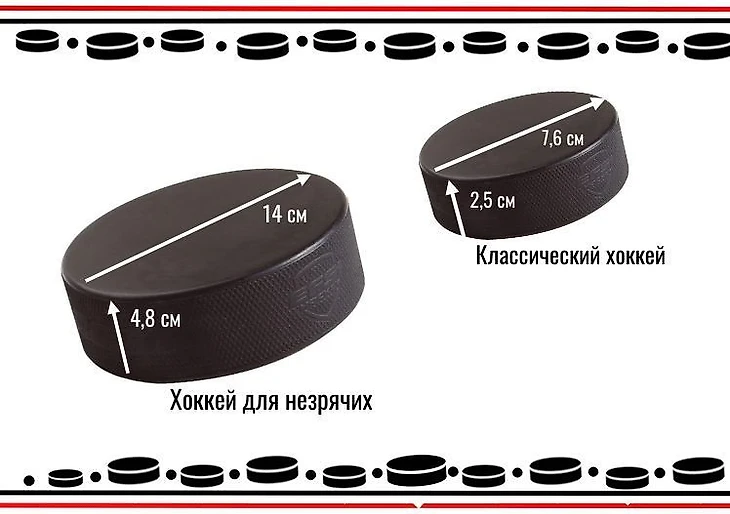 Ориентируются по игре хоккеисты с помощью звука шайбы. По размерам она в два раза больше обычной. Внутри шайба полая и имеет восемь шариков. При перемещении снаряда по льду они бьются о стенки и создают звуковой ориентир для хоккеистов. Звук похож на биение шариков о стенки консервной банки. Перемещается шайба за счёт своей конструкции медленнее обычной, что сделано специально для удобства игроков.