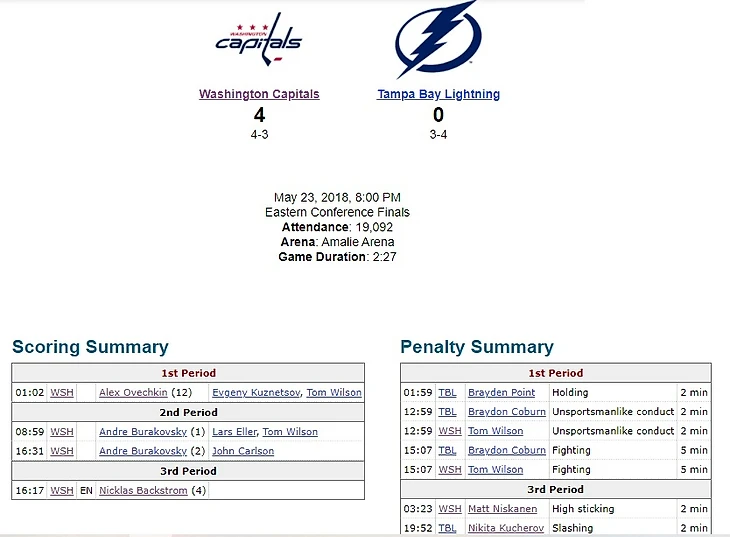 Кросби добился паритета только по заброшенным шайбам, но мы-то помним, какой ценой это было сделано. Третий гол Кросби во второй игре был забит с вопиющим нарушением правил, Куницу за этот эпизод оштрафовали на 2.5 штуки баксов, но гол засчитали.