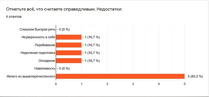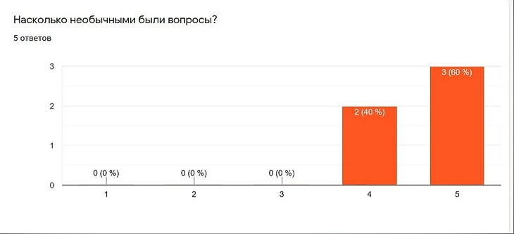 Нужно было заполнить четыре пункта, связанных с моими вопросами. Ссылка попала в рабочий чат и ответы посыпались. Вернее, я не знаю, как было: долго боялась смотреть результат. Я критики не страшусь... Но не хотела подтверждать свои сомнения. Все не могли отозваться чисто положительно. Как и в любом человеке, во мне есть тень неуверенности. Она выступает, когда кто-то важный плохо оценивает мой труд. Сегодня я впервые смогла проверить свои ожидания, и вот, что из этого получилось: