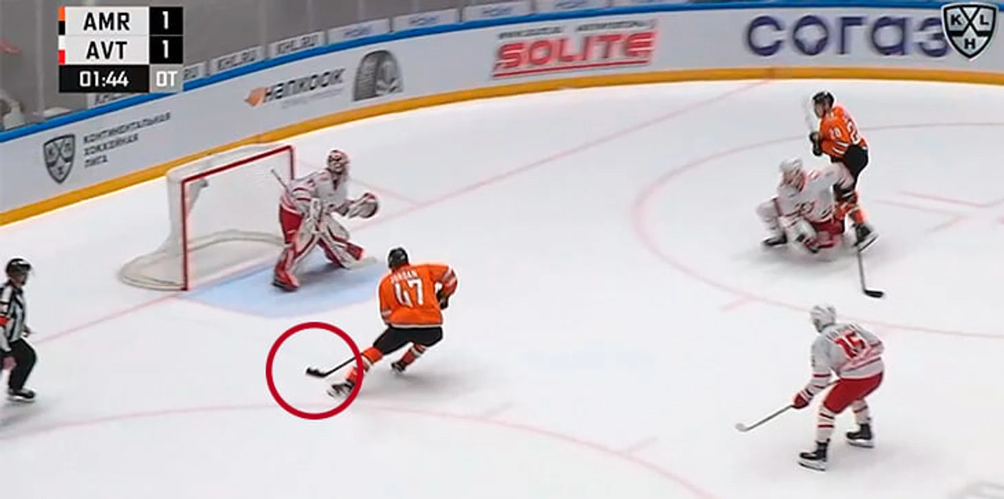– За несколько секунд до этого один из наших игроков потерял клюшку, которая так и осталась лежать в нашей зоне. В моменте, когда был выход 2 в 1, наш защитник занял позицию недалеко от этой клюшки. И когда игрок «Амура» начал отдавать пас, шайба спряталась за этой клюшкой, а клюшку загораживал защитник. Я потерял шайбу из виду, искал ее у своего защитника, а она оказалась уже в воротах.