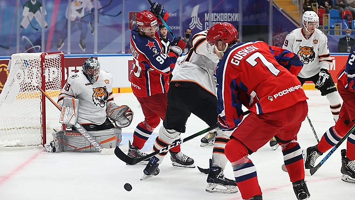 Второю двадцатиминутку красно-синие также начали без раскачки, усилив натиск в штрафной «тигров». Но голкипер хабаровчан смог отразить многочисленные броски игроков ЦСКА.