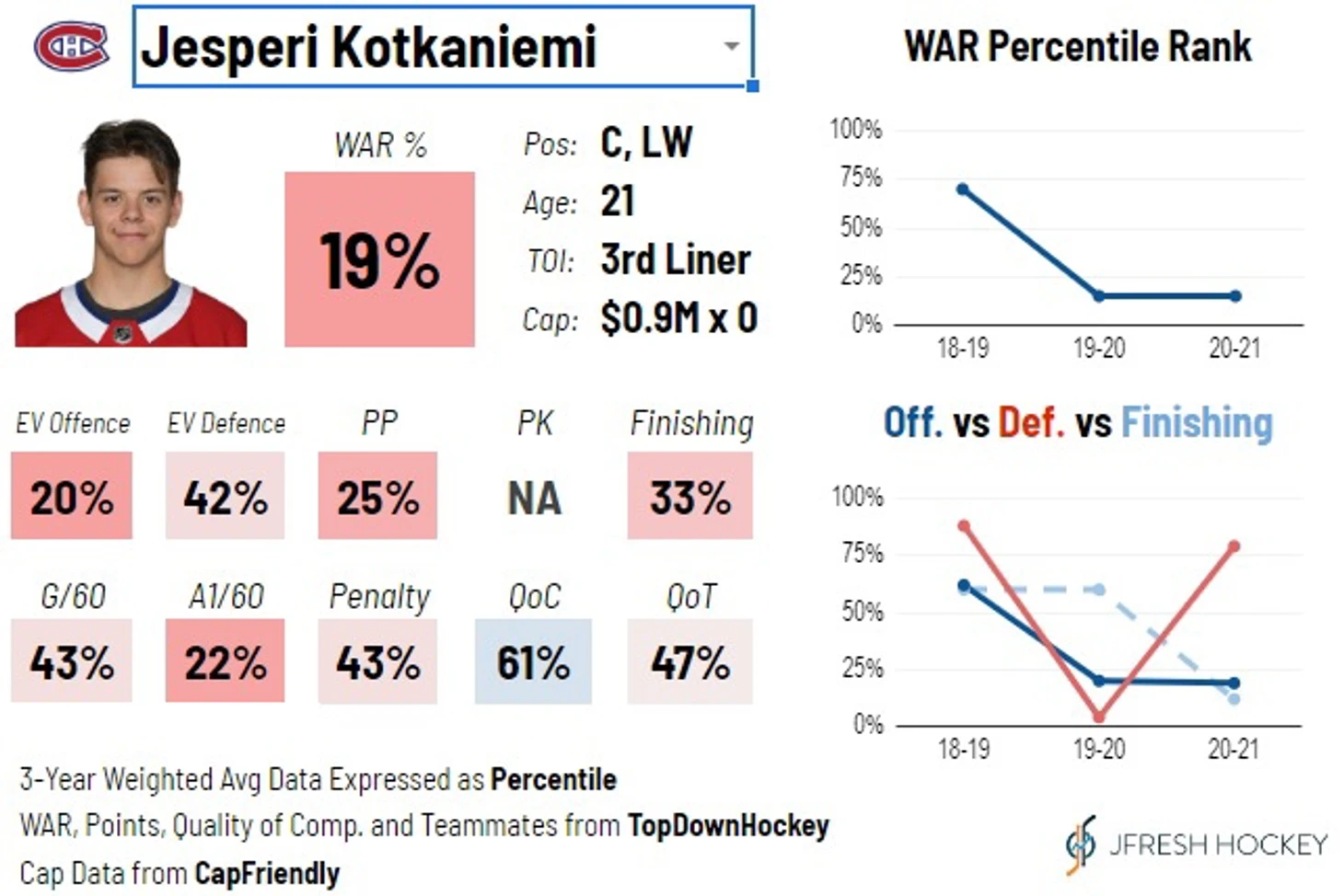 И это не все, дополнительной занозой становится база контракта, которую надо повторять уже через год в качестве квалифицированного предложения, чтобы не потерять права на игрока. Котканиеми также получает право на арбитраж, но даже серьезная прибавка в результативности вряд ли повлечет рост стоимости контракта, а вот при текущем уровне игры придется переплачивать и создать плохой аналог для других ОСА команды, которые могут использовать такой же вариант, чтобы выбить себе лучше контракт.