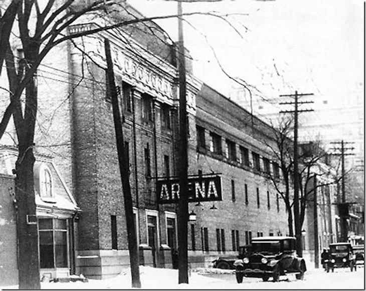 - Вот... Передаю по рядам фото из 20-х. Я надеюсь фотография ко мне вернётся. На ней Вы видите Mutual Street Arena. Сооружение знаменитое. Имя, можно сказать, легендарное. Из-за неё, в некоторой степени, произошёл раскол в НХА, который привёл к образованию НХЛ. В честь неё, одно время, носила название знаменитая торонтская франшиза. Но это - темы для отдельных бесед. Нам же она сейчас интересна чем? Совершенно верно... И третий наш сегодняшний герой дебютировал в НХЛ на этой арене. 15 ноября 1928-го года в матче "Торонто Мэйпл Ливз" - "Чикаго Блэк Хокс" (2:0) на лёд вышел Йоханнес "Джонни" Готцелиг, а по-русски - Ваня - Иван Готцелиг.