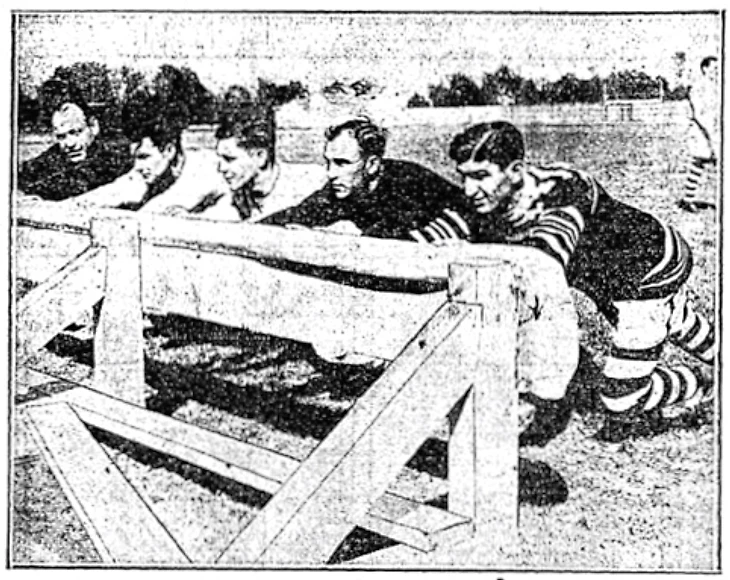 - В различных источниках вы сможете встретить несколько вариантов места рождения Готцелига. Есть вариант, что рождён он в Канаде - Джонни его выдумал, когда ему надоело отвечать на лишние вопросы при пересечении канадско-американской границы. А делать это, как Вы понимаете, ему приходилось часто. До того, как Джонни придумал такую "липу", он заявлял, что рождён в Одессе, но и это было неверно. Надо полагать, он просто прикинул на карте ближайший большой город к месту своего рождения, о котором ему, и давайте не будем в этом сомневаться, говорили родители. На самом же деле Иван Альбертович (именно так) Готцелиг был рождён в 1905-ом году (по иным данным - в 1906-ом - я затрудняюсь сказать, какая информация достоверней), в немецком селении Клостердорф Таврической губернии. Сейчас, примерно в этом месте, расположено село Змиевка, Херсонщина, Украина (рядом расположен известнейший заповедник Аскания-Нова). Дальше - всё, как у Пудаса и у Хоффингера. Ивану Готцелигу не исполнилось ещё и года, когда родители эмигрировали в Канаду, в Регину, Саскачеван. Естественно, парень был "обречён" встать на коньки и начать играть в хоккей. Ну, а коли довелось ему пробиться в Национальную Хоккейную Лигу, играл он, как Вы догадываетесь, неплохо. О его дебюте в НХЛ я уже сказал... Вот ещё интересный факт. Вы не забыли, в тоже самое время за "Чёрных Ястребов" играл и Вэл Хоффингер? Так вот - 25 ноября, того же, 28-го, года за "Чикаго" сыграли сразу два уроженца Российской Империи (против "Бостона" - 1:1). 30 декабря 1928-го года состоялся первый "российский" гол в НХЛ. Джонни (а был это уже, безусловно, Джонни) Готцелиг отличился в выездном матче с "Детройт Кугарз" (поражение 1:3). Я продемонстрирую Вам ещё парочку групповых фотоизображений Джонни Готцелига. Для чего? Просто так. В то время фотография была явлением не частым, а тут мои товарищи (заочные) из Канады предоставили мне несколько фото с предсезонных сборов "Блэк Хокс" 1929-го года. Отмечается, что на сборах не было льда, а владелец команды, ветеран Первой Мировой, отставной майор (а по совместительству кофейный барон) Фредерик Маклафлин был человеком жёстким и даже, в некоторой степени, жестоким. В качестве тренеров по физ.подготовке он пригласил парочку своих боевых товарищей.