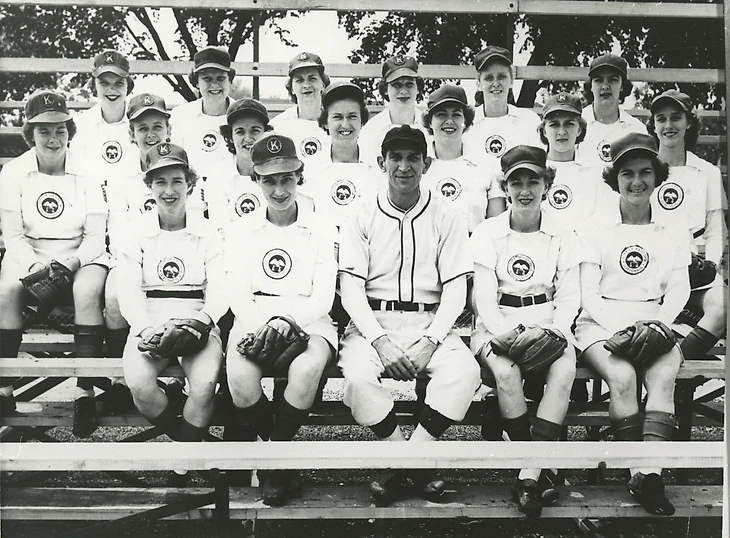 - Да, да... И попрошу Вас воздержаться от "солёных" комментариев. Как говорил сам Джонни, если бы он не стал хоккеистом, то обязательно стал бы бейсболистом. Заканчивая регулярные сезоны в НХЛ, он всегда приезжал в межсезонье в Саскачеван, где играл в бейсбол на достаточно приличном уровне. С началом Второй Мировой войны очень многие спортсмены были призваны в ряды Вооружённых Сил. Минимизация НХЛ до "оригинальной шестёрки" - прямое следствие этого явления. Бейсболистов - и того больше - около пятисот человек получили повестки. "Индустрия большого спорта" получила очень серьёзную пробоину. И тогда кому-то пришла в голову мысль - заменить, как и на заводах, мужчин женщинами. Сказано сделано. AAGPBL - женская бейсбольная лига просуществовала 1943-1954 годы. Йоханнес (только сейчас вспомнил официальное имя) Готцелиг проработал Генеральным менеджером в трёх командах, причём на фото Вы видите чемпионский состав 1943-го года. Если однажды найдёте комментарии его подопечных той поры, почитайте, я же их приводить не хочу - женские коллективы...
