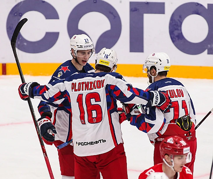 Концовка поединка получилась нервной. Армейцы продолжали прессинговать в зоне соперника. За минуту до окончания матча спартаковцы сняли вратаря, а за тридцать секунд до сирены взяли таймаут. Но команда Сергея Федорова смогла не только выстоять, но и забросить. Окончательный счет в этой встрече установил Сергей Плотников – 5:3 в пользу нашего клуба. Нападающий оформил первый хет-трик во взрослой карьере. Сергей уверенно лидирует в списке лучших бомбардиров команды. На его счету 9 (5+4) очков. Три ассистентских балла набрал Окулов. По два очка в этом матче за счет результативных передач заработали Гилмор и Попов.