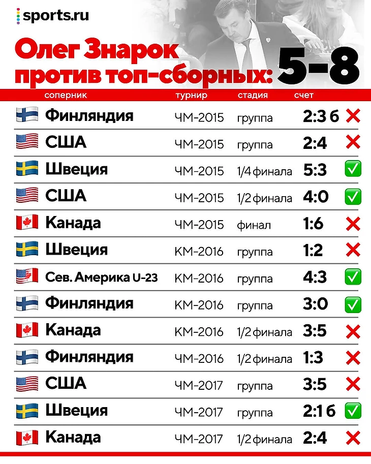 Мы собрали статистику Олега Знарка на турнирах сборных: крайне придирчиво отобрали составы соперников – поэтому в списке нет ОИ-2018 и ЧМ-2014, поэтому выборку можно считать честной.