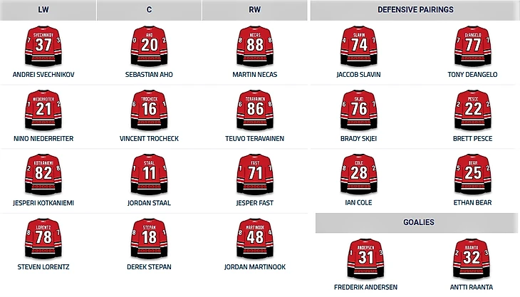 Тем не менее, в нападении у Каролины всегда хватало глубины состава практически на любую позицию и слегка обновленные тройки атаки не уступают прошлогодним версиям. Отдельной темой в межсезонье стало подписание путем оффершита молодого Йеспери Котканиеми из Монреаля. Способный сыграть, как в центре, так и на краю финский нападающий получил однолетний контракт в новом клубе, а какие у Каролины на него будут дальнейшие планы – вопрос остается открытым.