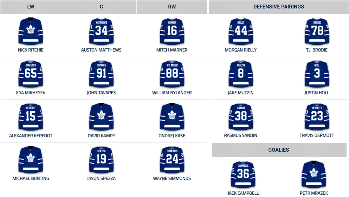 Перед новым сезоном в Торонто решили пересобрать вратарскую линию, совершив непроизвольный обмен голкиперами с Каролиной. Вместо экс-основного Фредерика Андерсена, с которым не стали продлевать соглашение, взяли чеха Петра Мразека, подписавшего с «листьями» 3-летний контракт ($3.8 млн). Скорее всего, как и после травмы Андерсена в прошлом сезоне, у Торонто не будет явного первого номера, а за место в старте будут конкурировать Мразек и Джек Кэмпбелл, для которого предстоящий год будет контрактным.