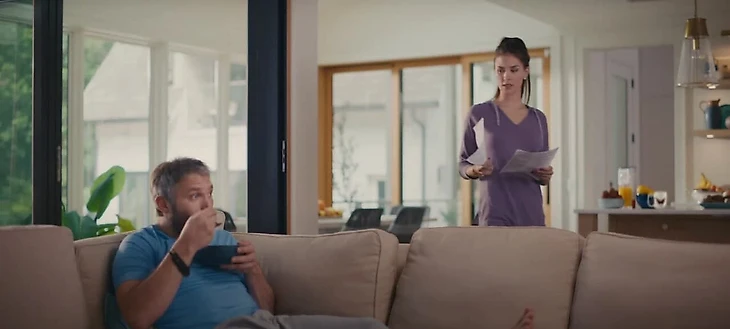 Все начинается довольно просто – Овечкин ест хлопья, к нему подходит Анастасия с кипой бумаг.