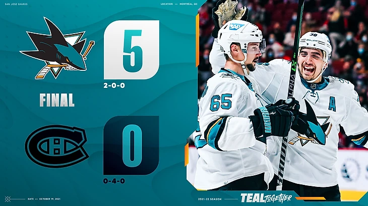 "Монреаль Канадиенс"-"Сан-Хосе Шаркс" 0:5.Тимо Майер и Эрик Карлссон набрали по 3 очка (1+2),Джонатан Дален забросил 2 шайбы,Адин Хилл отразил 21 бросок и сыграл первый сухой матч в сезоне.