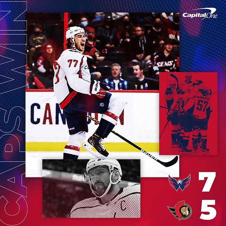 "Оттава Сенаторз"-"Вашингтон Кэпиталз" 5:7.Ти-Джей Оши забросил 3 шайбы,Александр Овечкин забросил 2 шайбы,Коннор МакМайкл отдал 2 результативные передачи,Дмитрий Орлов отдал результативную передачу,Илья Самсонов отразил 32 броска.У хозяев Дрейк Батерсон набрал 4 очка (3+1),Джош Норрис набрал 2 очка (1+1),Томас Шабо отдал 2 результативные передачи,Антон Зуб отдал результативную передачу.В 3 периоде Брэди Ткачук и Томас Уилсон получили по 10 минут штрафа.