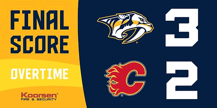 "Калгари Флэймз"-"Нэшвилл Предаторз" 2:3 (ОТ).Мэтт Дюшен в овертайме приносит победу гостям.Мэтт Дюшен набрал 2 очка (1+1),Микаэль Гранлунд отдал 2 результативные передачи,Юсе Сарос отразил 38 бросков.В первом периоде Бретт Ричи подрался с Марком Боровицки.