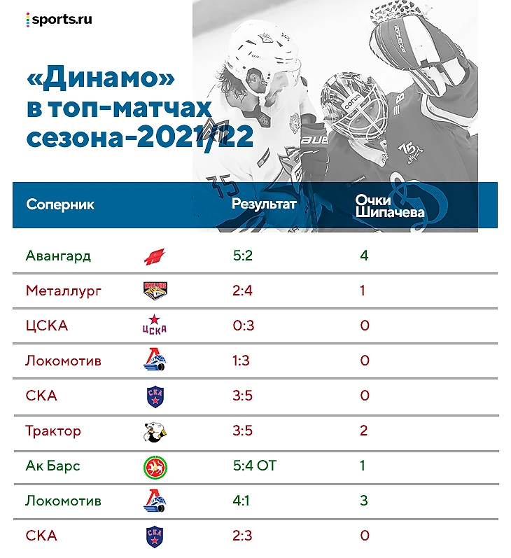 Посмотрите еще раз в таблицу – если в этом сезоне Шипачев не набирает очки, «Динамо» проигрывает топ-матч. Его уровень вполне очевиден для соперников – Вадима стараются перекрывать любыми возможными методами. Так было и год назад – Разину для нейтрализации первой тройки банально не хватило ресурсов, а дальше со звеном Шипачева справился не яркий, но крепко организованный СКА.