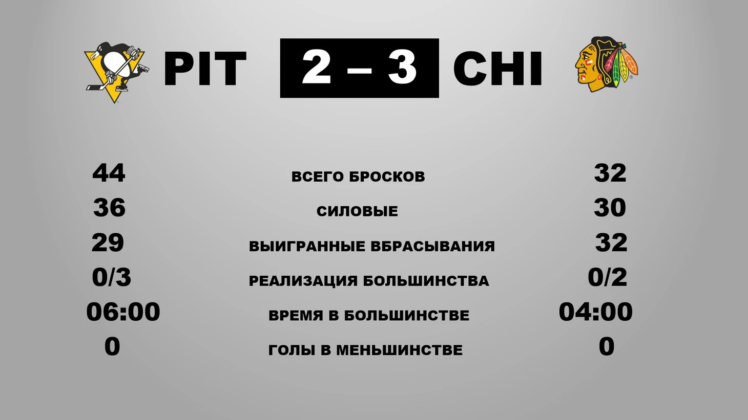 Исход матча решился в серии буллитов, где Питсбург не смог перебросать Флери, а Чикаго Забило 2 гола.