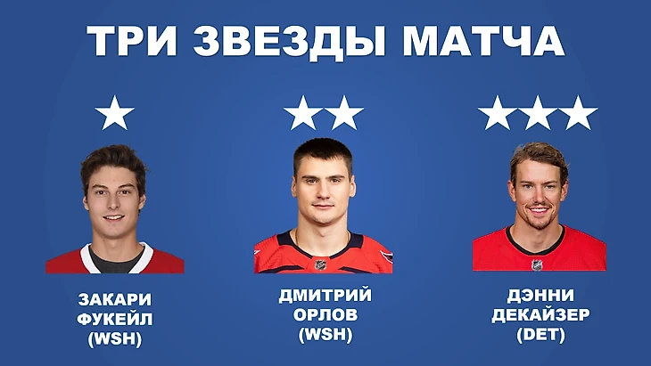 Сегодня Вашингтон сыграл с Детройтом и выиграл 2:0. Орлов забил первый гол с передач Кузнецова и Овечкина. Итоговая статистика и видео матча ниже: