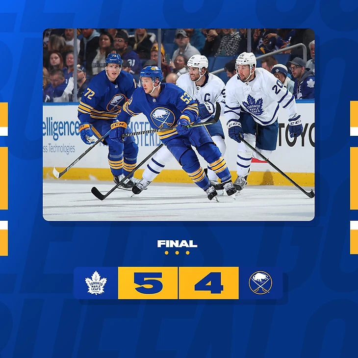 "Буффало Сэйбрз"-"Торонто Мэйпл Лифс" 4:5.Морган Райлли в конце матча забросил победную шайбу.Джон Таварес и Морган Райлли набрали по 2 очка (1+1),Александр Керфут отдал 2 результативные передачи,Джозеф Уолл отразил 23 броска.У хозяев Джефф Скиннер набрал 3 очка (2+1),Тэйдж Томпсон набрал 2 очка (1+1),Кайл Окпосо отдал 2 результативные передачи."Кленовые листья" выиграли 3 игру подряд.