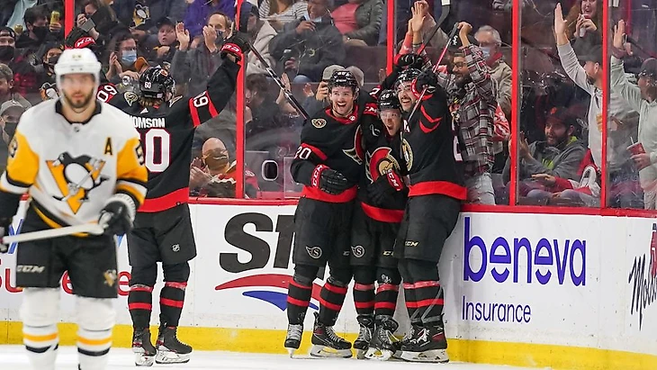 "Оттава Сенаторз"-"Питтсбург Пингвинз" 6:3.Во втором пеиоде хозяева забросили 4 шайбы.Дрэйк Батерсон набрал 4 очка (2+2),Майкл Дель Зотто набрал 2 очка (1+1),Томас Шабо отдал 2 результативные передачи,Филип Густафссон отразил 28 бросков.У гостей Эван Родригес набрал 3 очка (2+1),Каспери Капанен набрал 2 очка (1+1)."Сенаторы" прервали серию из 6 поражений подряд.