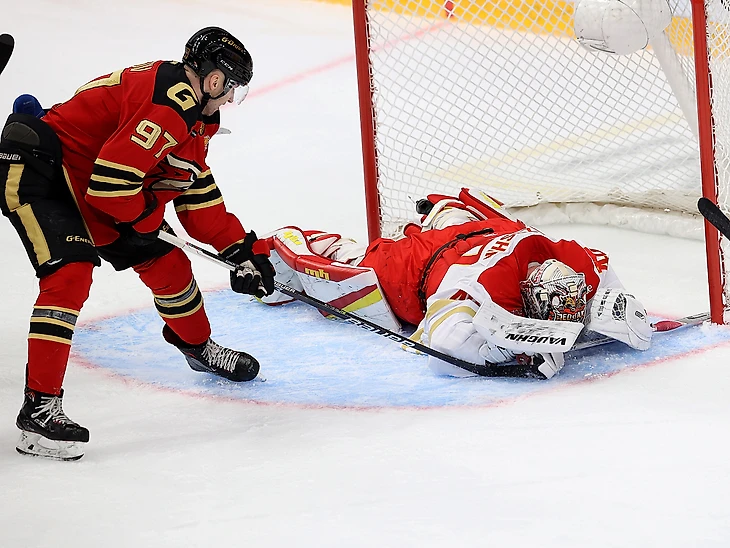 Вратарь «Куньлуня» Александр Лазушин совершил 56 (!) сейвов — это третий результат в истории КХЛ — но всё равно пропустил полную авоську. «Авангард» перебросал китайцев 61-10, и это тот уровень динамики и агрессии, который хотят видеть все: болельщики, тренеры, руководители. Великолепный матч провёл Арсений Грицюк, который не только забил две, но и показал высочайший игровой интеллект, регулярно прочитывая ситуации на площадке в три раза быстрее соперников.