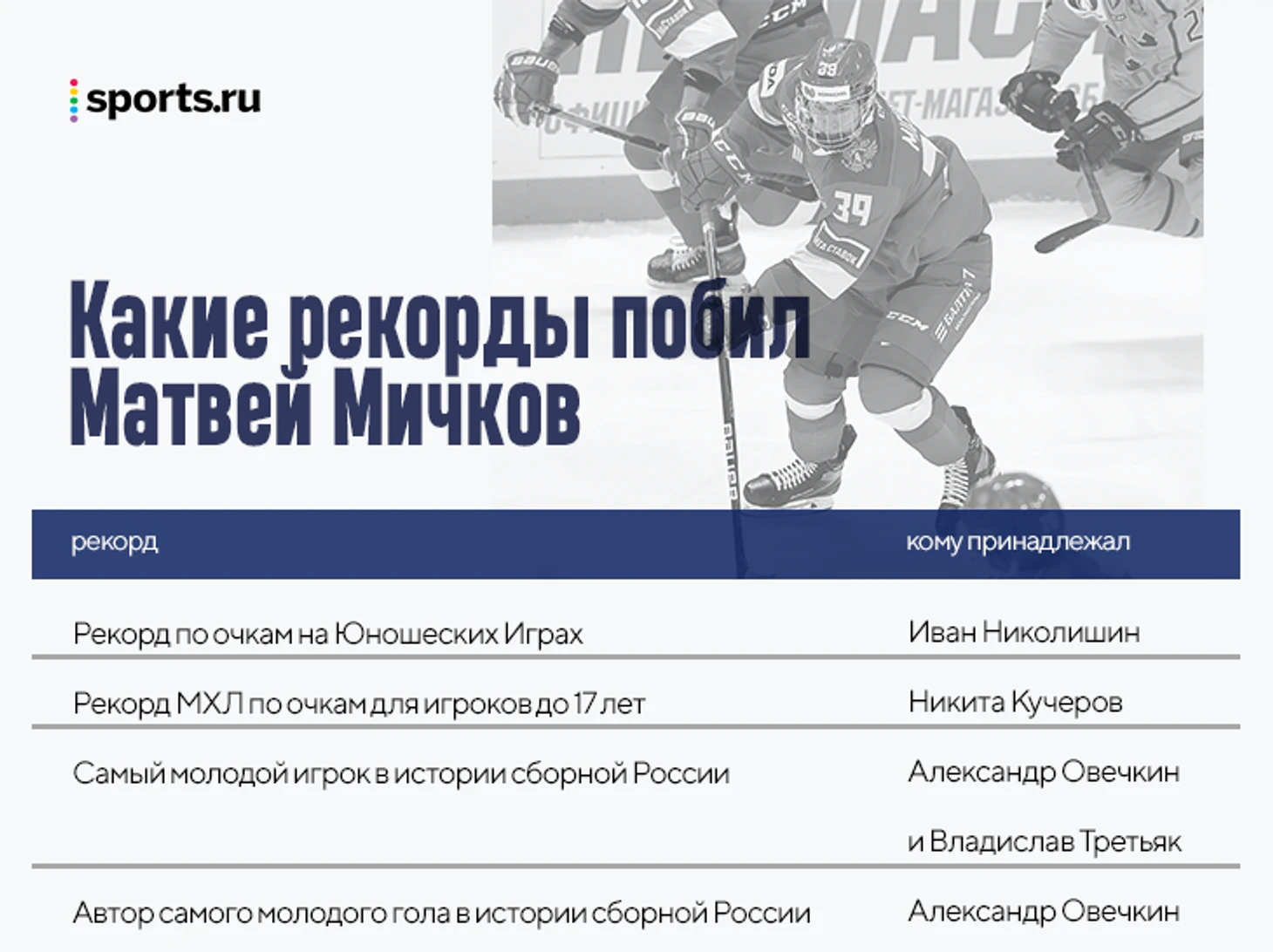 Мичкову всего 16, а он уже бьет рекорды наших легенд: Кучерова, Овечкина и даже Третьяка