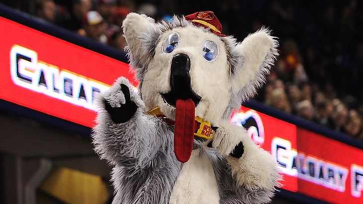 А вот соседи по провинции своего маскота любят, зато вот болельщики других команд просто терпеть не могут. Мы перемещаемся в «Калгари» и знакомимся вот с этим зверем – пёс Харви. Это первый маскот в истории НХЛ, он появился в 1983 году. В оригинале его зовут Harvey the Hound, что в переводе означает «гончая Харви». Но вы видите, что на гончую Харви совсем не похож, это скорее хаски или даже маламут. Правда, у слова «hound» есть и другой перевод – «негодяй», и вот здесь Харви точно свою кличку оправдывает. Харви – один из самых противных и несносных маскотов в НХЛ. Его поведение на трибунах – это отдельная история. Пика своей славы пёс достиг в 2003 году на дерби против «Эдмонтона». «Калгари» вёл 4-0, а Харви троллил соперников за их скамейкой. Это настолько сильно тренера соперников Крейга Мактавиша, что тот просто вырвал у маскота фирменный красный язык изо рта и бросил в толпу. «Калгари» всё-таки выиграл 4-3, а эпизод стал знаменит на всю Америку. Многие болельщики сетуют, что Харви слишком уродлив, несуразен и старомоден и своим дизайном и правда застрял где-то в 80-ых, но фаны «огоньков» пока не готовы его променять ни на кого другого.