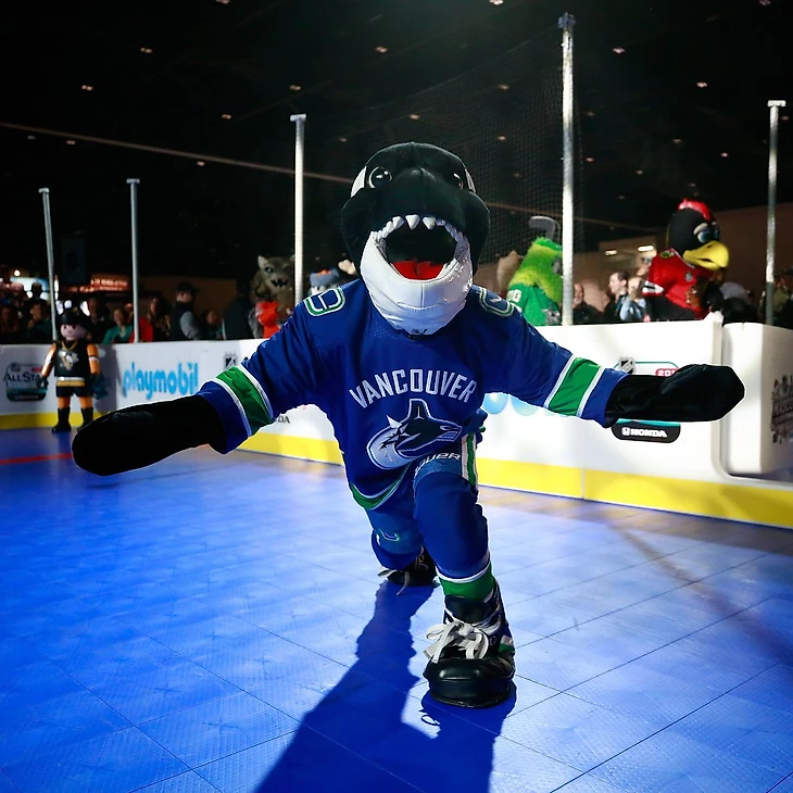 Знакомиться с талисманами канадских клубов мы будем также с запада на восток, а самая западная канадская провинция – Британская Колумбия. Здесь базируется «Ванкувер Кэнакс», а потому маскот этой команды понятен уже из названия – косатка. Этого красавца зовут Фин и он с командой уже 20 лет. Самое интересное, что Фин позиционирует себя как вратаря, хотя, например в симуляторе NHL вы можете сыграть им только как полевым игроком. Рост Фина 190 сантиметров, хват – левый, вполне себе может подменить Тэтчера Дэмко в рамке. Главная фишка маскота в том, что он может выпускать пар из своей пасти, хотя касаткам это и не свойственно. Фин очень любит детей, а потому был постоянным посетителем в хосписе для неизлечимо больных ребят в Ванкувере, которым управляет команда. Также про Фина сняли целую серию анимационных короткометражек, которые показывают на арене на медиакубе. Правда, там по легенде Фин живёт не на арене, а в своём собственном подводном доме в проливе Джорджия. До Фина у «Ванкувера» был другой маскот – полярный медведь по имени Пранкстер, то есть медведь-шутник. Но в команде он не прижился, просуществовал один сезон, а затем целых 10 лет «касатки» были без талисмана вовсе. Правда, болельщики в «Ванкувере» Фина почему-то недолюбливают: по последнему опросу именно фаны «косаток» считают свой талисман худшим в Лиге.