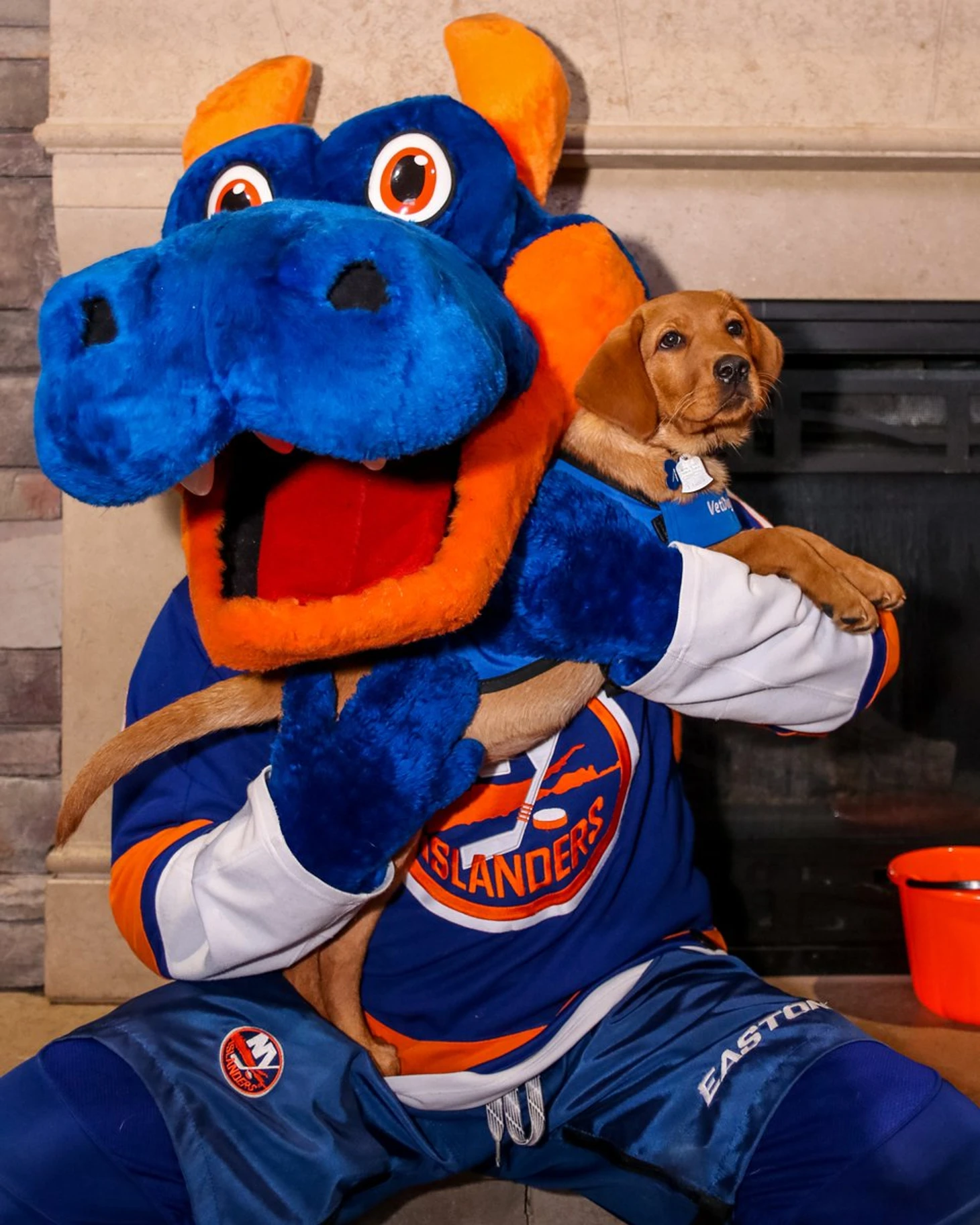 Перемещаемся дальше в Нью-Йорк и здесь сталкиваемся с необычной ситуацией – командой НХЛ, у которой нет своего маскота. Да, это «Нью-Йорк Рейнджерс». Возможно, клуб и так настолько известен, богат и аристократичен, что маскот им не нужен, однако на наш взгляд это выглядит немного странно. Зато вот у их коллег из «Айлендерс» маскот получился просто на ура! Знакомьтесь, дракон Спарки. Согласитесь, не самый очевидный вариант для талисмана, но этому есть вполне логичное объяснение. До 2009 года в городе был футбольный клуб «Нью-Йорк Драгонс» и Спарки зажигал именно там, причём в совершенно других цветах: розовом, красном и чёрном. Однако клуб распался и Спарки переоделся в сине-оранжевые цвета. Однако в сентябре 2015 года его уволили! С этим решением не согласились буквально все от болельщиков клуба до разработчиков ЕА, которые все равно добавили Спарки в симулятор NHL16. Однако в клубе быстро поняли ошибку. Продажи билетов резко упали, и клуб вынужден был искать выход из ситуации. Разумеется, Спарки позвали обратно уже через 3 месяца после увольнения. С тех пор он неизменно зажигает на домашней арене клуба, а недавно, как и вся команда, обрёл новый дом на UBS Arena.