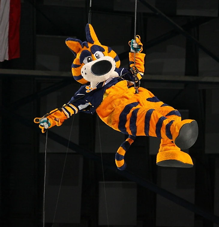 Пока из Нью-Йорка уезжать ещё рано, потому что мы не заглянули к «Баффало Сейбрс», где живёт один из самых любимых болельщиками маскотов во всей НХЛ. Это саблезубый тигр Сейбртус, один из двух в Национальной Хоккейной Лиге. Сейбртус – опытный болельщик, который с 1992 года шизил на местной команде по лакроссу, а затем сосредоточился исключительно на «Баффало». На домашней арене клуба тигр живёт под потолком, а потому перед каждым матчем вынужден спускаться вниз, что превращается в отдельное шоу. Также Сейбртус не прочь, например, погонять на льду на квадроцикле, устроить перестрелку с болельщиками футболками из базуки, сыграть на барабане любой хит и ещё многое-многое другое. Сейбртус всегда носит джерси любимой команды, хотя сам тигр золотого цвета в синюю полоску. Любой болельщик может получить автограф Сейбртуса, правда для этого придётся подняться под самые своды арены, как раз-таки в специальный дом тигра, где он проводит своё свободное время. Кстати, в последнем рейтинге маскотов Сейбртус занял второе место вслед за медведем Карлтоном – отличное достижение. К тому же недавно у Сейбртуса появился коллега, причём живой. Это ньюфаундлер Рик, которого назвали в честь телеведущего клуба Рика Жаннере. Рик будет встречать болельщиков, общаться с детьми, воспитываться и расти весь этот сезон вместе с командой.